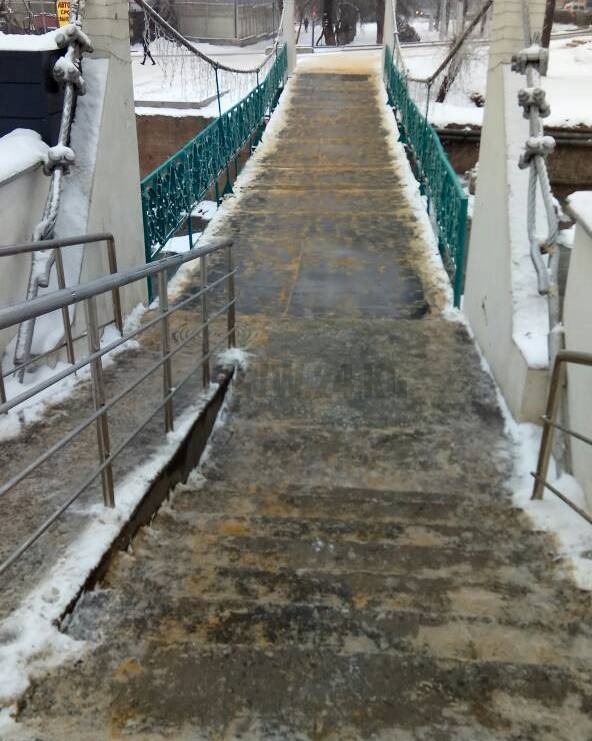 Из-за гололеда мост на проспекте Айтматова через реку Ала-Арча стал опасным. Об этом ИА «24-kg.com» сообщил читатель.