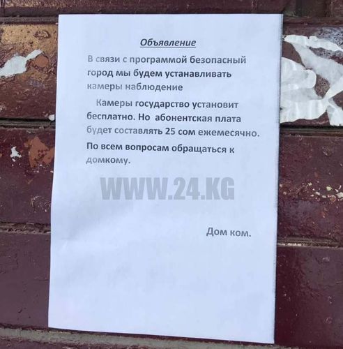 В них говорится, что «государство установит камеры бесплатно, но абонентская плата будет составлять 25 сомов ежемесячно».
