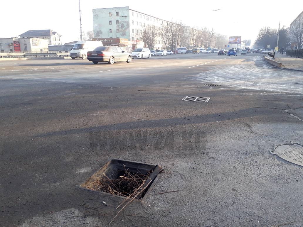На пересечении проспекта Чуй и улицы Осмонкула на проезжей части открыта арычная решетка. Об этом ИА «24-kg.com» сообщил читатель.