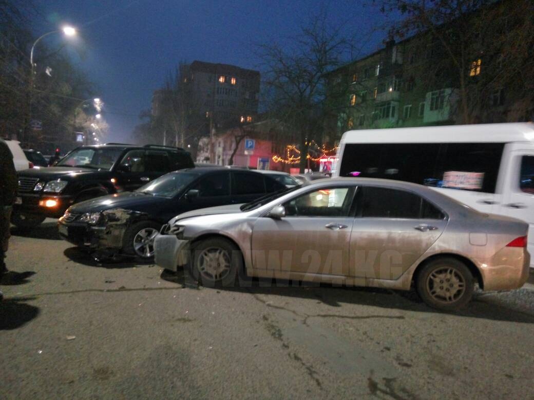 «Столкнулись три автомобиля — Lexus и две легковые машины. Сотрудников милиции на месте нет. Движение по улице Московской парализовано», — сообщил читатель.