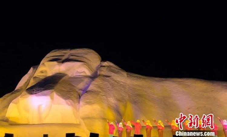 Над скульптурой в течение недели трудились более сотни мастеров. Им понадобилось 60 тысяч кубометров снега. Размер композиции — около 120 метров в длину, 30 метров в ширину и 20 метров в высоту.