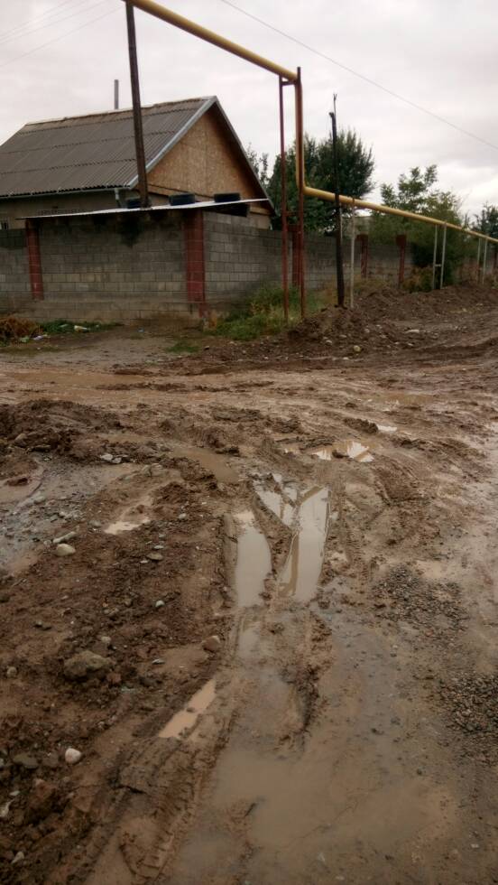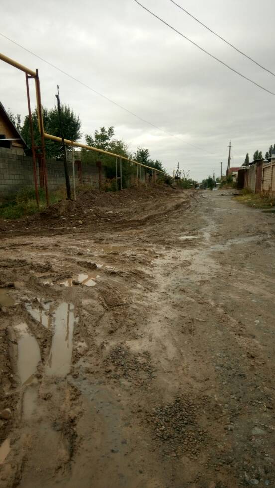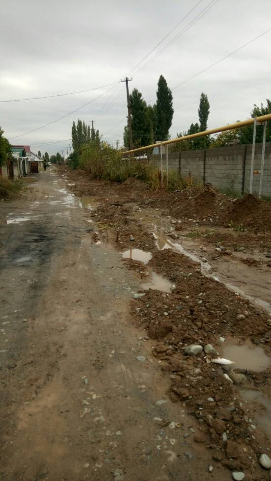 Улицу Дмитрова в жилмассиве «Ала-Тоо» перерыли газовщики. Из-за грязи она стала непроходимой. Об этом ИА «24-kg.com» сообщил читатель.