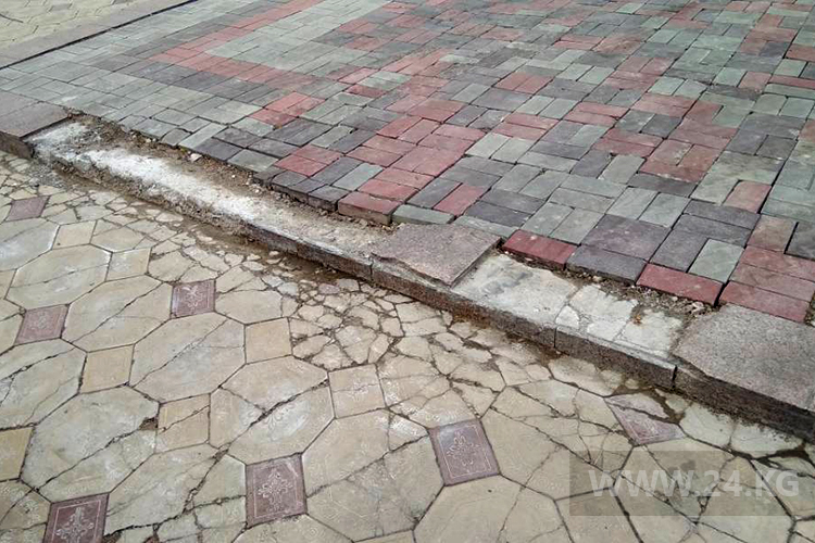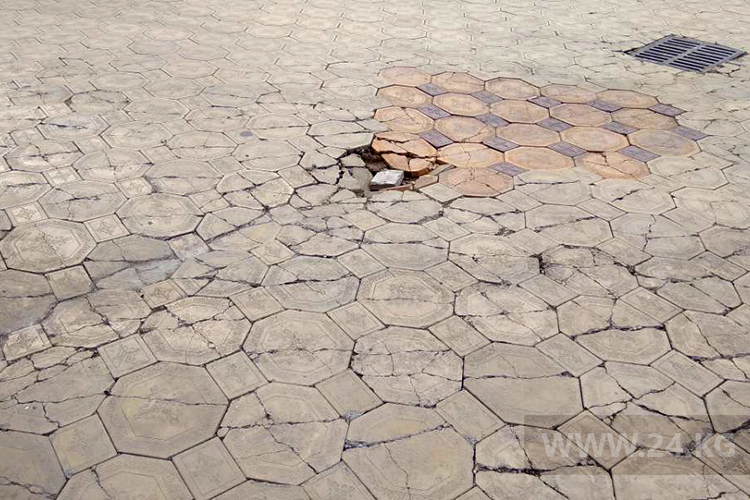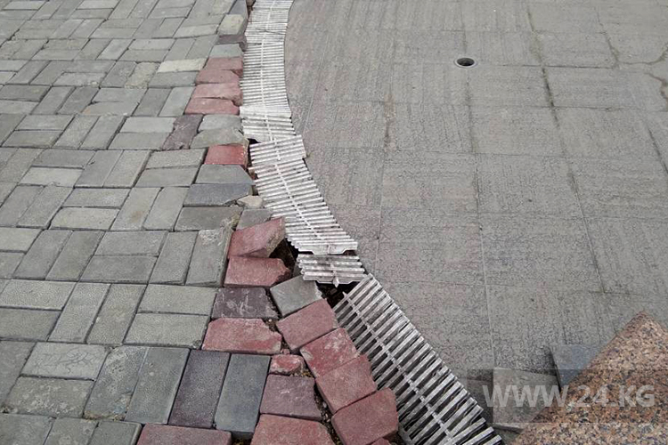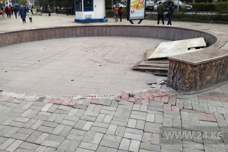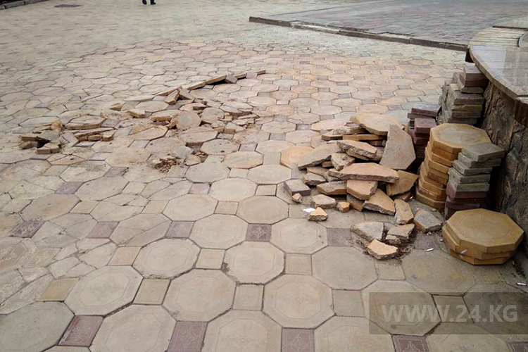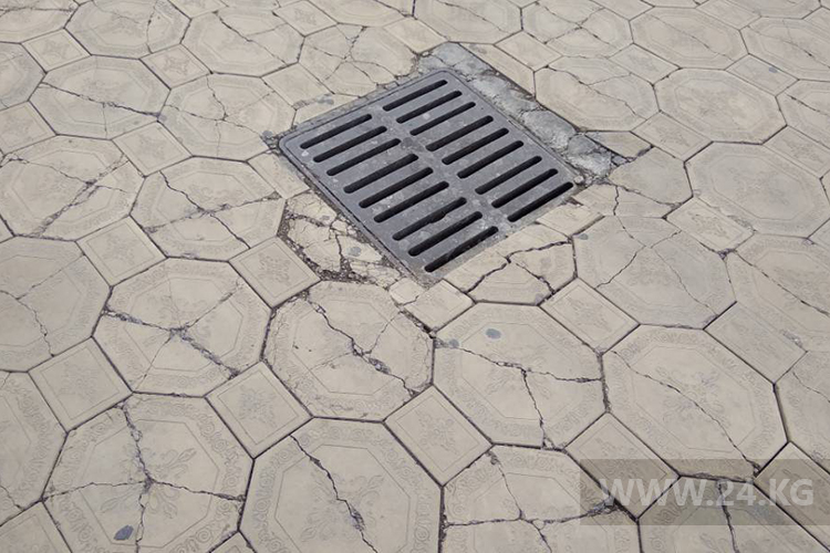 Площадка возле здания Центрального универмага «Айчурек» разрушается. Фотографии ИА «24-kg.com» прислал читатель.