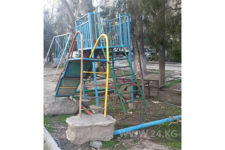«Мы боимся отпускать детей на улицу. Им негде играть. Двор весь исковеркан, площадку демонтировали еще осенью во время ремонта теплотрассы. Качели, лестницы поставили криво, не закрепили. Обещали с наступлением тепла, уже март прошел. Сколько еще можно ждать?» — спрашивает Алянур Касымова, домком 3-го и 4-го домов микрорайона «Восток-5».