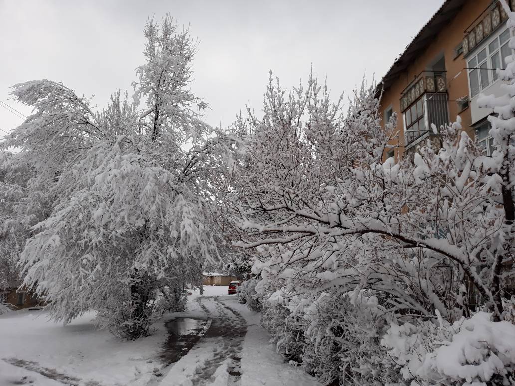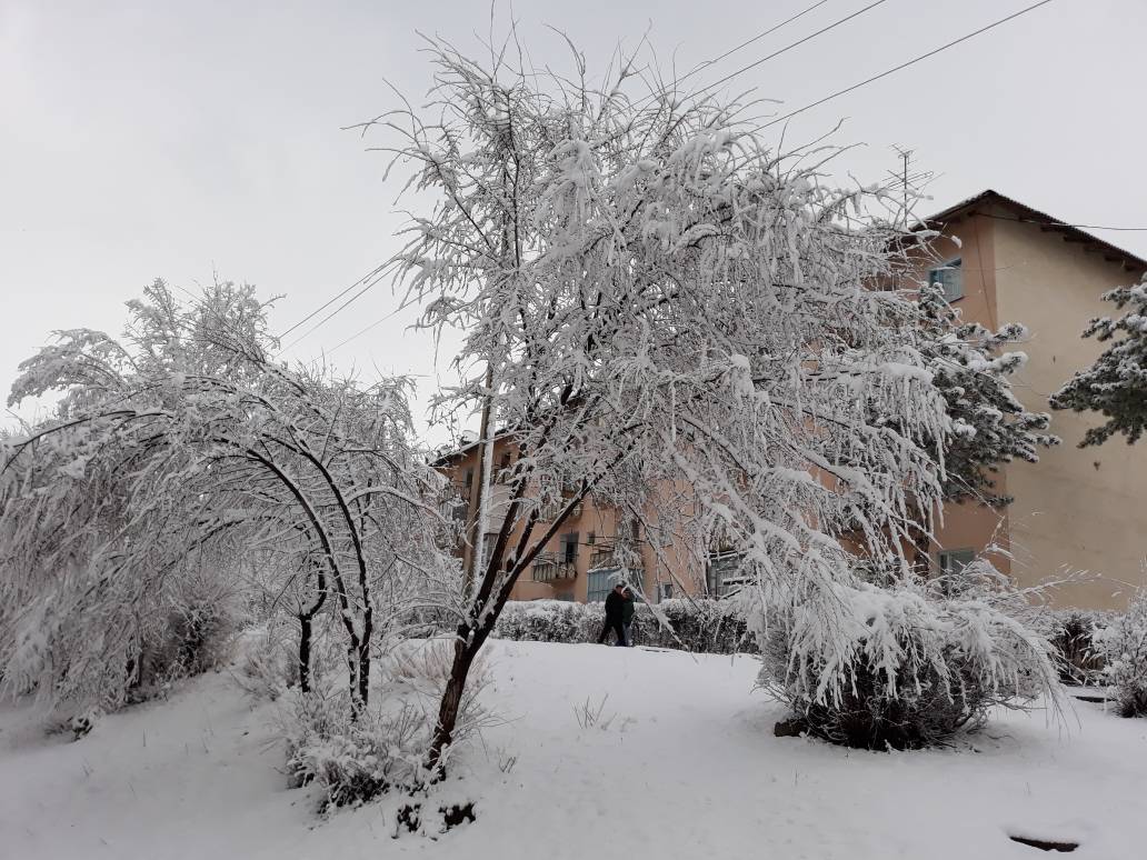 Ранее другой читатель сообщил, что в Ак-Суйском районе Иссык-Кульской области выпал снег, и высота снежного покрова составила 10 сантиметров. Местные жители достали зимние вещи.