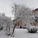 Читатель Андрей Колесников прислал фотографии «весеннего» поселка Пристань-Пржевальск, который сегодня засыпало снегом.