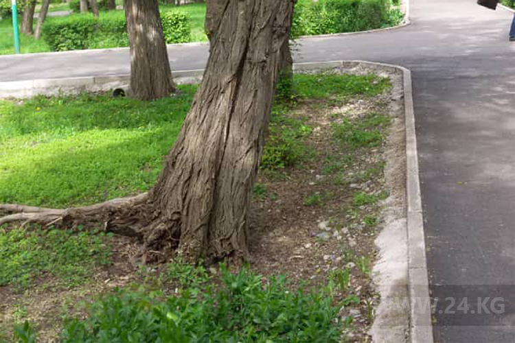 В сквере Тоголока Молдо просят убрать аварийное дерево. О нем ИА «24-kg.com» сообщил читатель.
