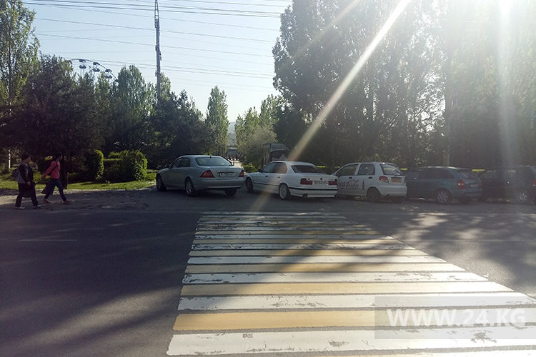 Бишкекчанка просит установить препятствие, чтобы автомобили не парковали на пешеходной площадке перед парком в микрорайоне «Асанбай». Она прислала фотографии.