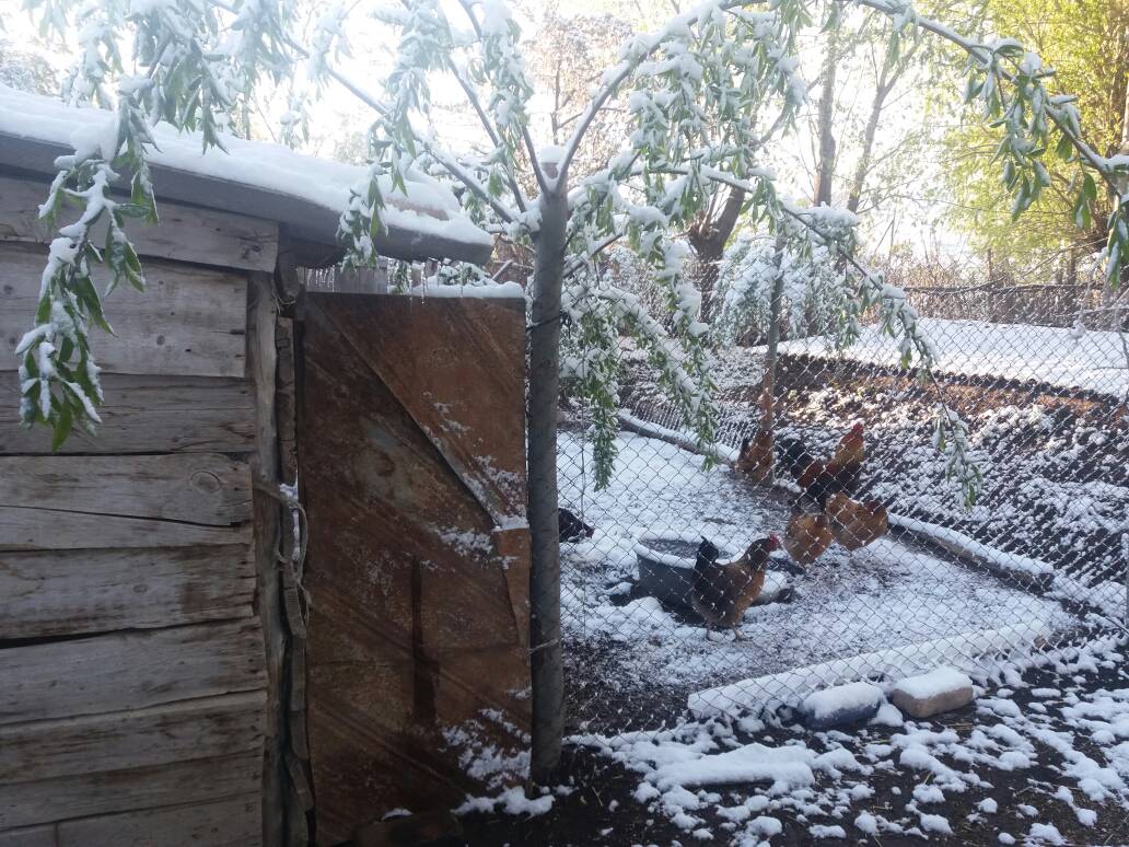 В Ак-Суйском районе Иссык-Кульской области ночью выпал снег. Фотографии из села Советского ИА «24-kg.com» прислал читатель.