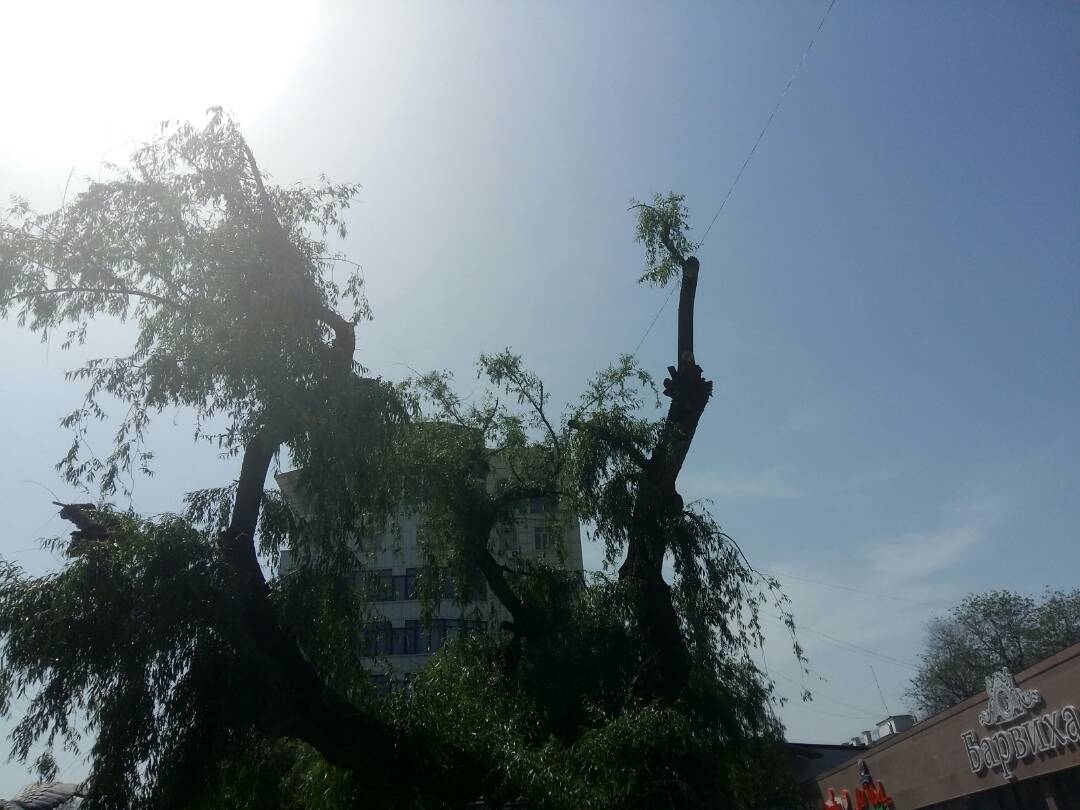 «Сегодня проходил у ЦУМа и увидел, что легендарные ивы обрезали просто варварски. Они напоминают декорации к фильму ужасов», — сообщил читатель ИА «24-kg.com».