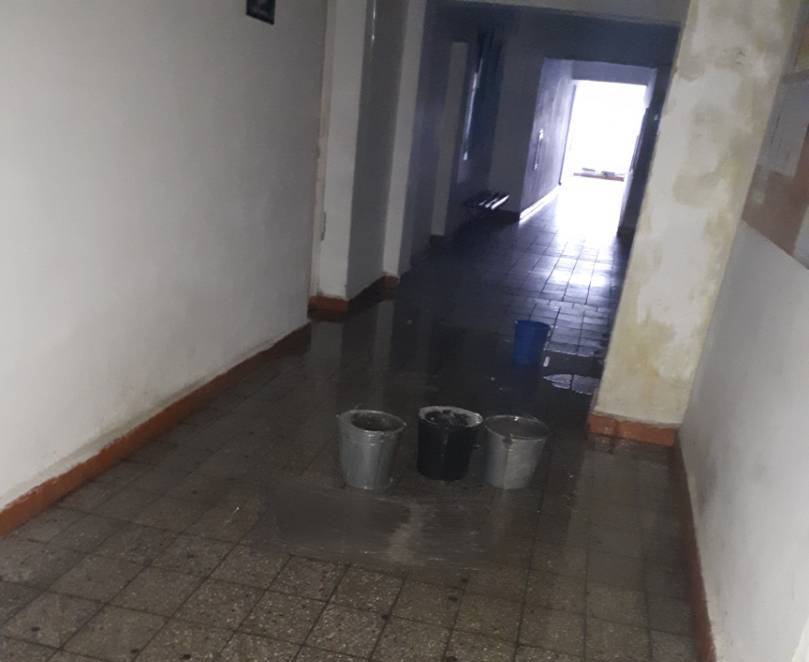 В юридическом колледже КНУ протекает потолок. Студент прислал в редакцию видео и фото.