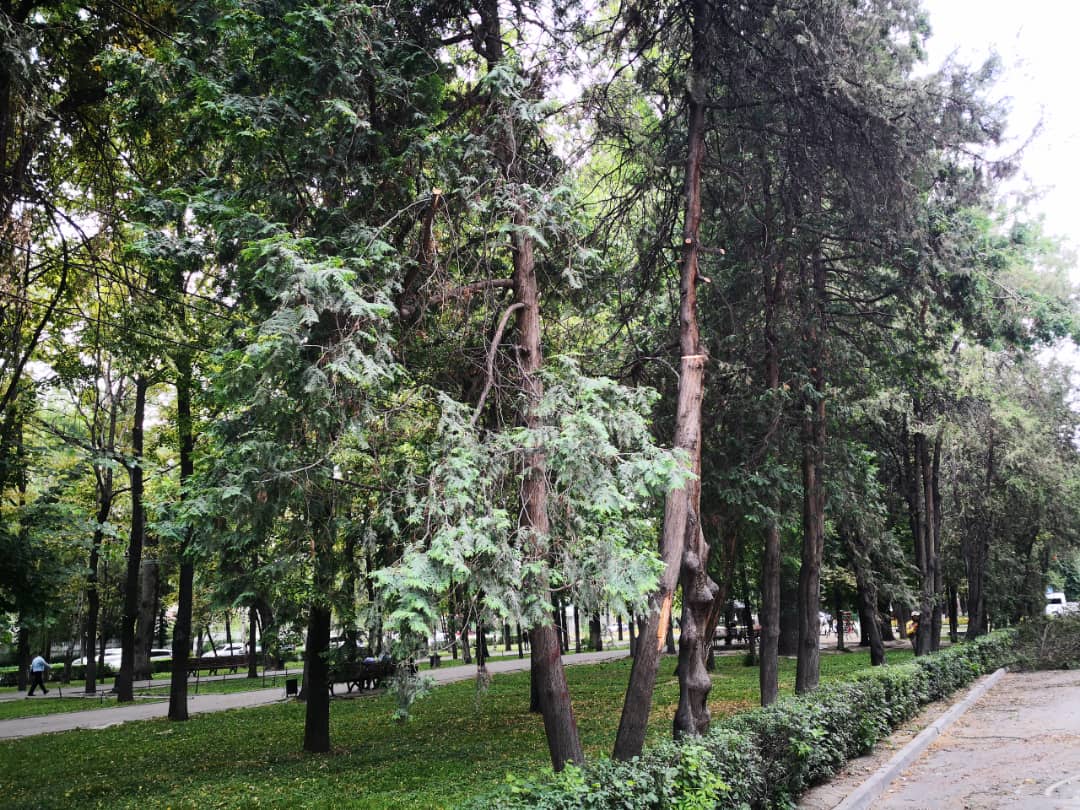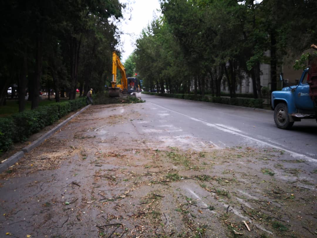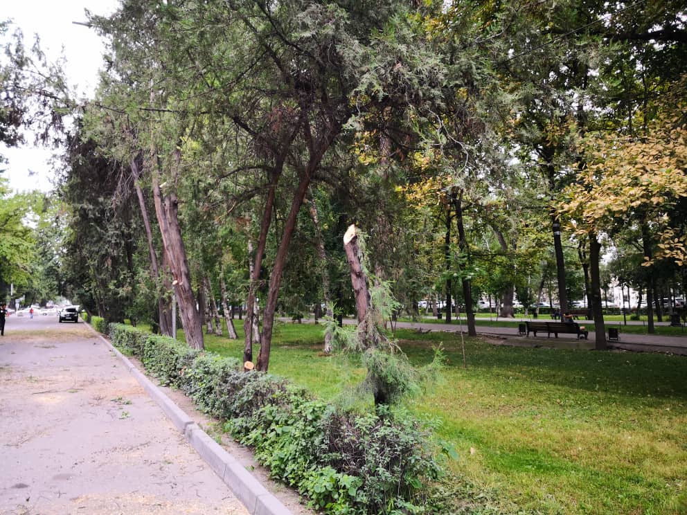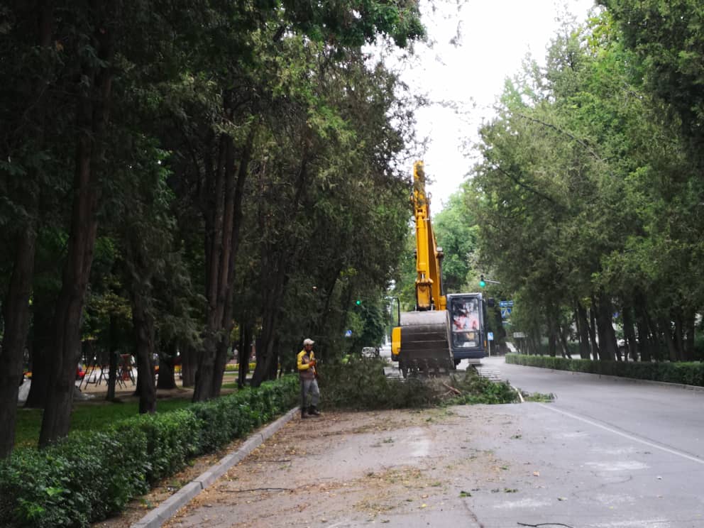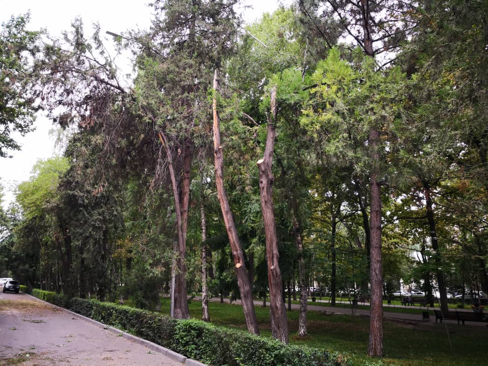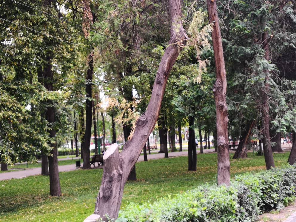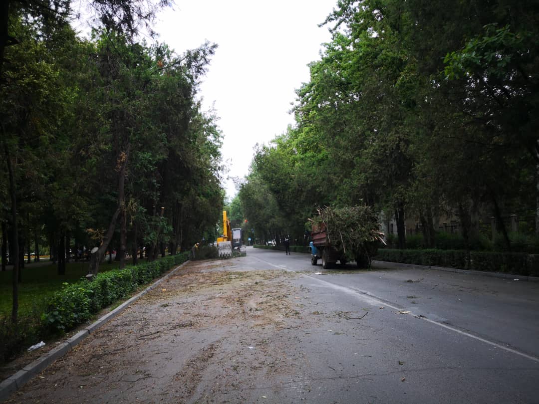 В Бишкекзеленхозе заявили, что деревья на бульваре не вырубают, а только обрезают мешающие проводам и зависшие ветки.
