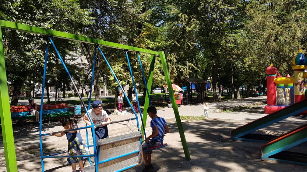На детской площадке на бульваре Молодой Гвардии (между улицами Московской и Токтогула) качели еле держатся на петле. Об этом ИА «24-kg.com» сообщил читатель.