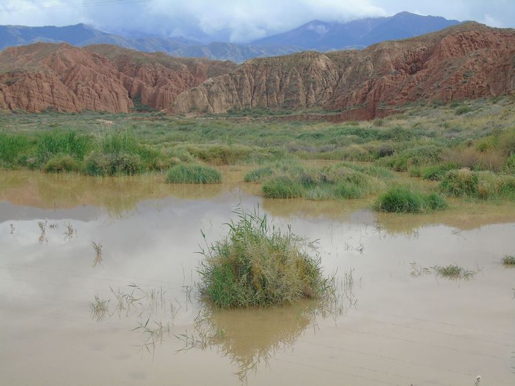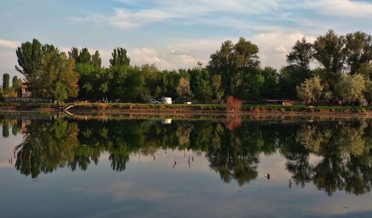 Теперь двинемся на восток. Первую остановку сделаем достаточно быстро — в районе Токмака. Именно там и сфотографировал пруд Орынбек Асилбаев. По его словам, это место в народе прозвали Трехозеркой.