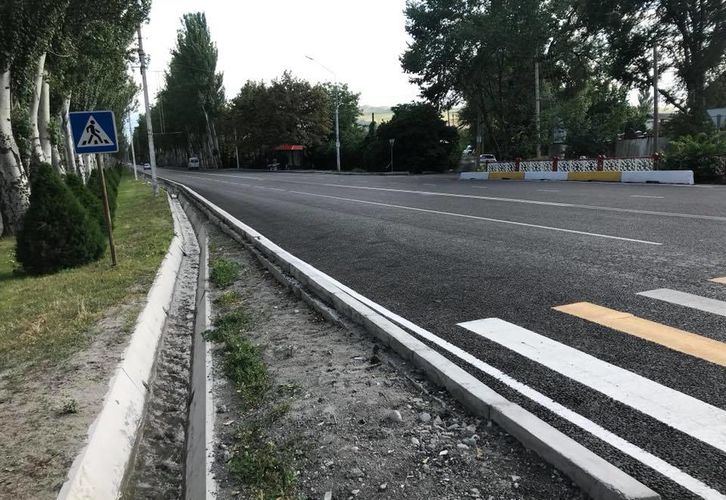 По их данным, пешеходный переход на новой дороге расчертили, но мостик через арык так и не сделали. Фактически переход упирается в бордюр.