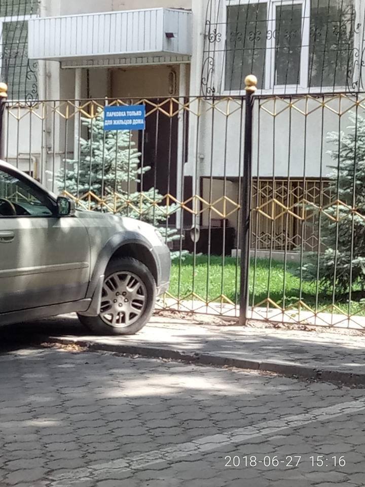 В Бишкеке жильцы дома на пересечении улицы Чокморова и бульвара Молодой Гвардии сделали парковку на тротуаре. Фотографии незаконной парковки выложила на своей странице в социальной сети Facebook руководитель Общественного фонда «Наше право» Калича Умуралиева.