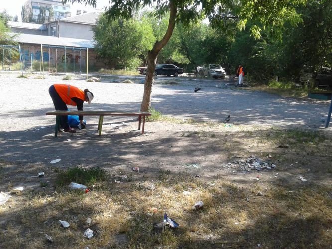 В 4-м микрорайоне Бишкека на игровой площадке во дворе домов №№ 45-47 убрали мусор. Об этом ИА «24-kg.com» сообщили в пресс-службе мэрии.