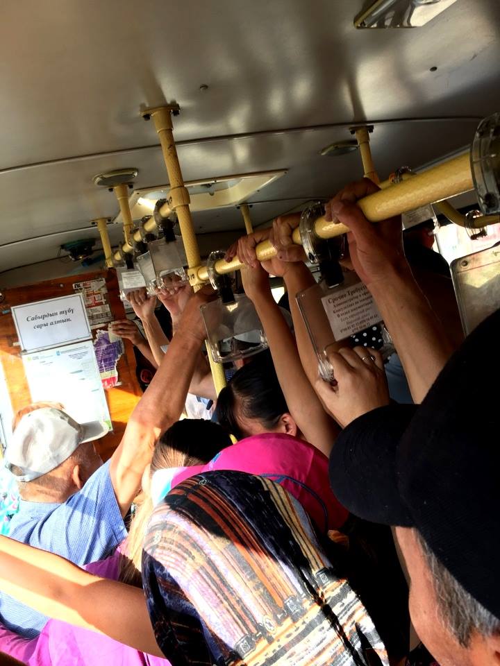 «Маршрут связывает села Маевку и Кызыл-Туу, проходит по густонаселенным районам, мимо Национального центра травматологиии и ортопедии (4-я горбольница) и ряда сел. Родственники живут в селе Кунтуу. Автобус приходит забитым в любое время. Люди мучаются, но вынуждены ездить. В такой давке и духоте пассажирам разных возрастов невероятно трудно, люди падают в обморок. Фотография сделана в 8.40 утра», — сообщил он.