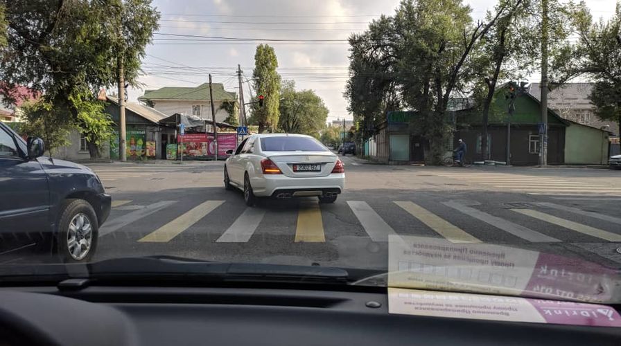 Читатель прислал 24-kg.com фотофиксацию двойного нарушения правил дорожного движения в Бишкеке на перекрестке улиц Горького и Элебаева.
