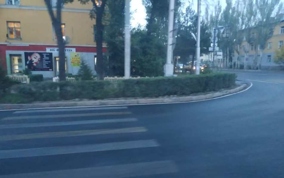 Фото читателя. Зебра на проспекте Айтматова. С другой стороны к тротуару путь лежит через лесопосадку