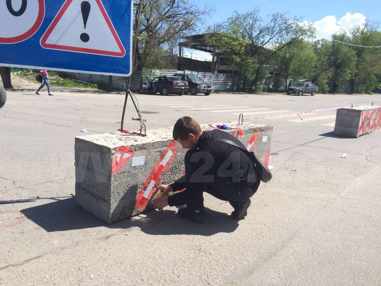 Таких мест в Бишкеке, где существует напряженная ситуация на дороге в связи с ремонтом, немало. Уже несколько месяцев идет реконструкция моста на проспекте Чуй. Управление капитального строительства намерено завершить работы к концу августа текущего года. А тем временем водители здесь ежедневно рискуют, мало того, что проезд узкий, так еще на бетонных блоках, установленных прямо на дороге, отсутствуют светоотражающие элементы, перед строительным объектом нет элементарных предупреждающих знаков.