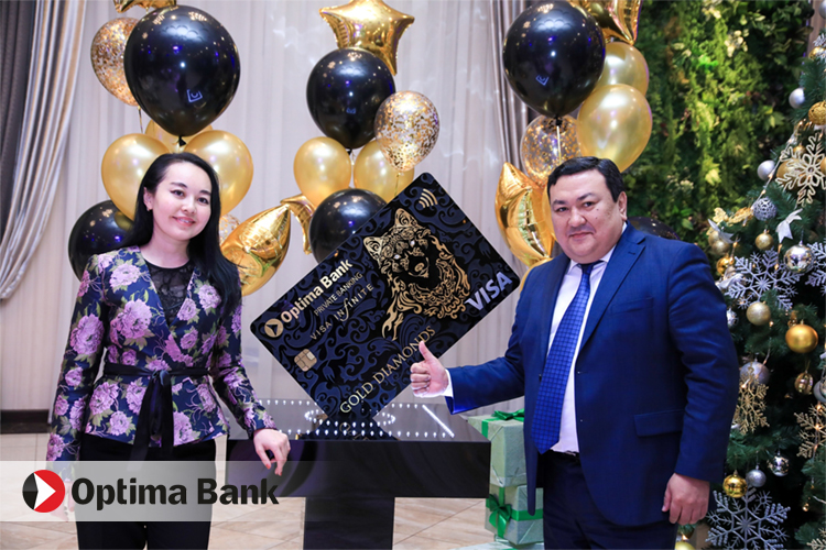 В преддверии Нового года «Оптима Банк» презентовал первую в Кыргызстане платежную карту Visa, инкрустированную бриллиантами и драгоценными металлами.