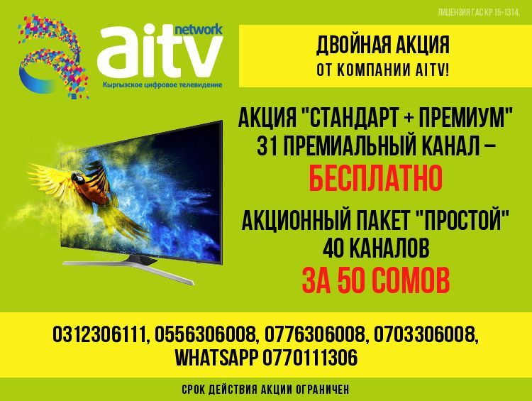 Компания aitv network, учитывая сложившуюся ситуацию в стране и мире, возобновляет акцию «Стандарт+ Премиум» и продлевает действие пакета «Простой».