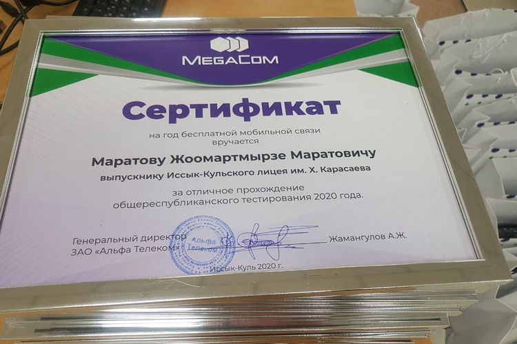 Руководство компании MegaCom поощрило ценными призами и подарками выпускников школ — обладателей золотых сертификатов, набравших наивысшие баллы по результатам Общереспубликанского тестирования 2020 года.