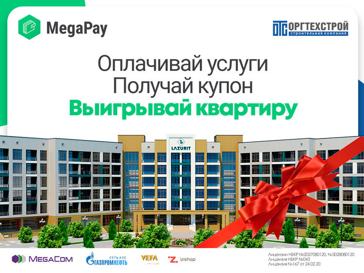 Напомним, что среди абонентов MegaCom разыгрываются более 200 ценных призов, в том числе главный — квартира на Иссык-Куле в ЖК LAZURIT от партнера ЗАО «Альфа Телеком» строительной компании «Оргтехстрой», а также: