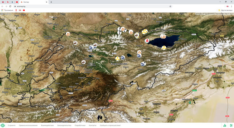 В Кыргызстане презентовали электронную экологическую карту ecomap.kg, на которую любой человек может нанести точку с информацией об экологическом происшествии.