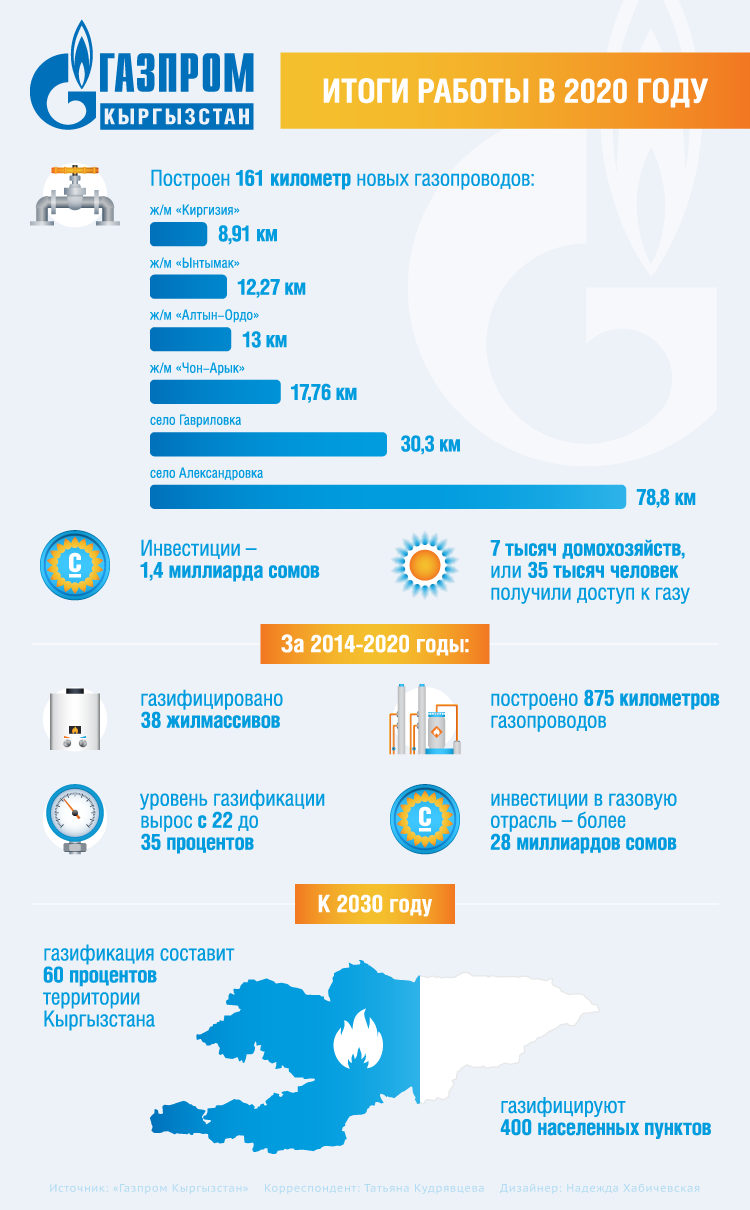 Несмотря на карантин и последствия пандемии коронавируса, «Газпром Кыргызстан» выполнил в полном объеме инвестиционную программу газификации на 2020 год.
