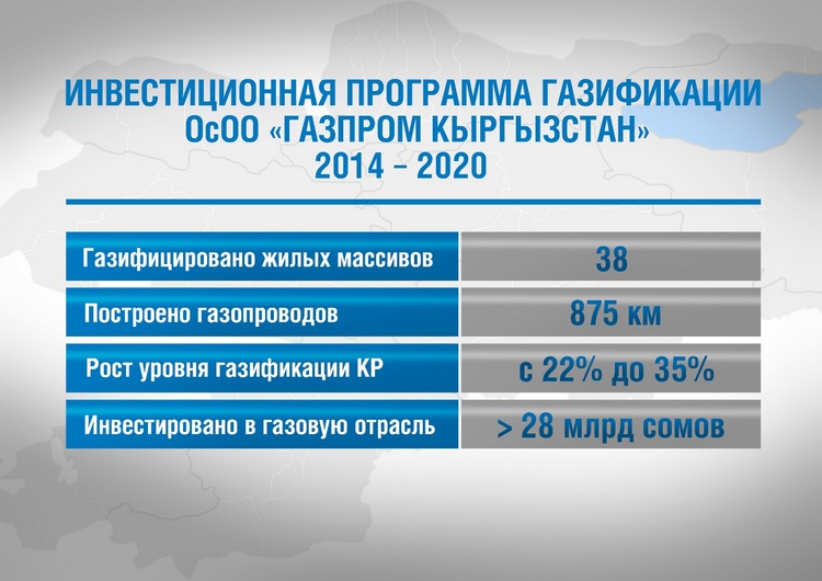Мы готовы строить газопроводы в ускоренном темпе и газифицировать новые районы, но на реализацию наших планов негативно влияет дебиторская задолженность бюджетных предприятий, которая сегодня превышает 700 миллионов сомов».