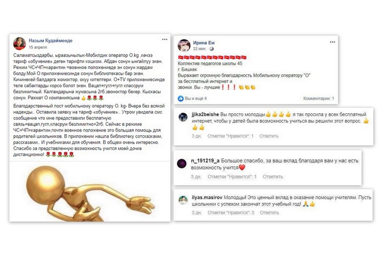 Считанные дни понадобились на разработку специальных тарифов и разделов в приложении «Мой О!» для школьников и учителей для удаленного обучения. Созданы тарифы для медиков, милиции, МЧС и других служб по борьбе с COVID-19, которые в период карантина были предоставлены бесплатно сотням тысяч абонентов О!.