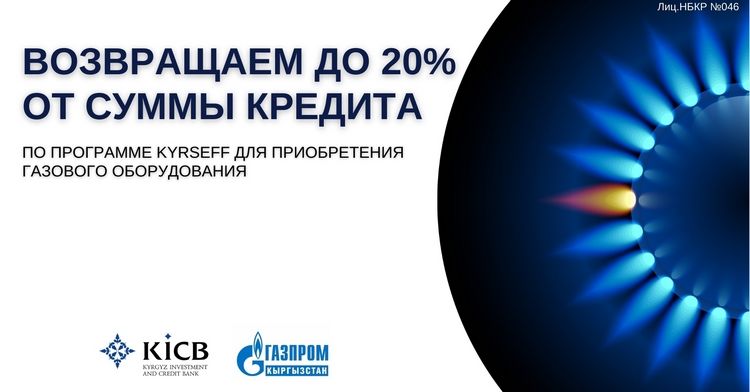 Кыргызский Инвестиционно-Кредитный Банк (KICB), программа финансирования устойчивой энергии KyrSEFF и компания «Газпром Кыргызстан» помогут кыргызстанцам перейти на экологически чистый природный газ и начать использовать энергоэффективные газовые котлы с высоким КПД. Выгода в том, что участники смогут купить, установить котлы в рассрочку и заплатить в итоге меньше, чем изначальная сумма по кредиту.