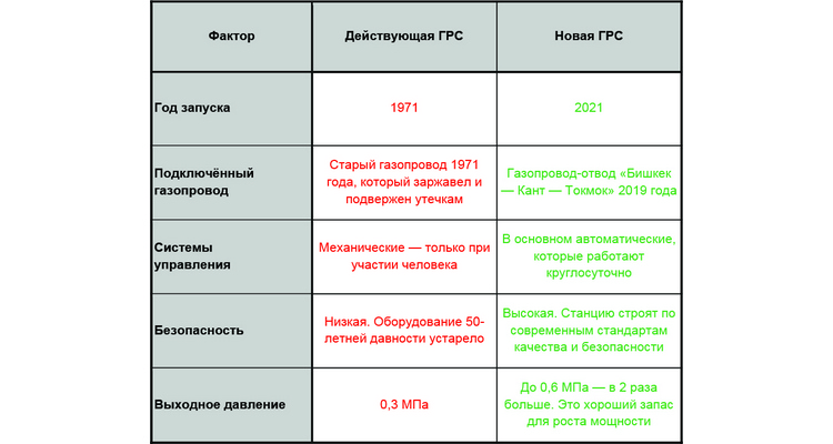 Чтобы исправить ситуацию, «Газпром Кыргызстан» в конце 2020-го начал строительство новой ГРС «Кант» и газопровода-отвода к ней. Начало эксплуатации новых газовых объектов запланировано на лето текущего года.