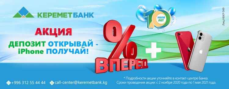 В честь своего 10-летия «Керемет Банк» объявил в ноябре прошлого года уникальную акцию для физических и юридических лиц «Депозит открывай — iPhone получай!».