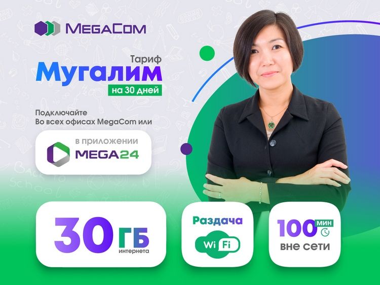 В рамках тарифного пакета «Мугалим» с абонентской платой 285 сомов за 30 дней предусмотрено все необходимое для комфортного общения и эффективной работы: