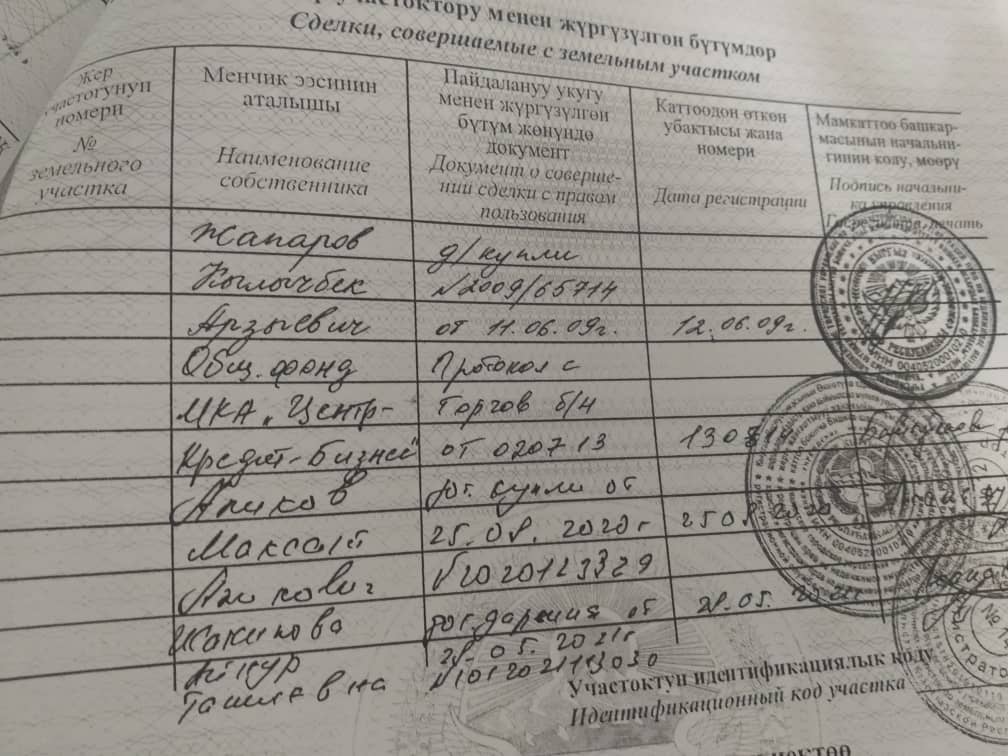 В соответствии с документами после Кылычбека Жапарова у недвижимости было еще три владельца — микрокредитная компания «Центр-Кредит-Бизнес», Максат Аликов и Айнур Жакыпова.