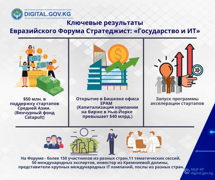 9-10 ноября 2021 года впервые в Кыргызстане проходит Евразийский форум «Стратеджист»: «Государство и ИТ» (StrategEast State and IT Eurasian Forum). «Стратеджист» в КР собрал национальных цифровых экспертов из разных секторов, а также более 50 международных цифровых лидеров, известных инвесторов из Кремниевой долины, представителей крупных международных IT-компаний, послов из разных государств. Организатор форума — центр новой экономики StrategEast. Соорганизатором события в Кыргызстане выступило Министерство цифрового развития.