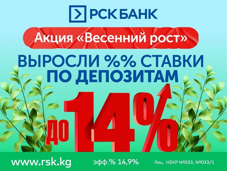 «РСК Банк» увеличил процентные ставки по депозитам «Сандык» и «Сандык плюс» до 14 процентов в рамках акции «Весенний рост»!