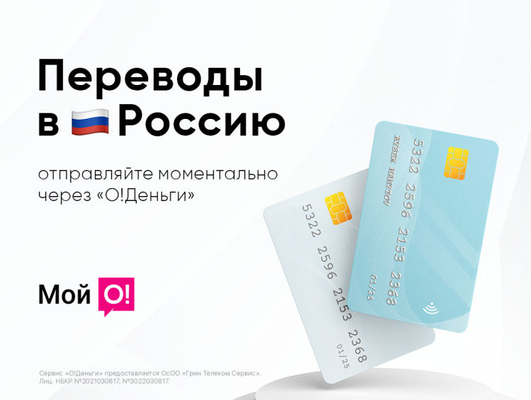 Сервис «О!Деньги» предоставляется ОсОО «Грин Телеком Сервис». Лицензия НБ КР № 2021030817, № 3022030817.