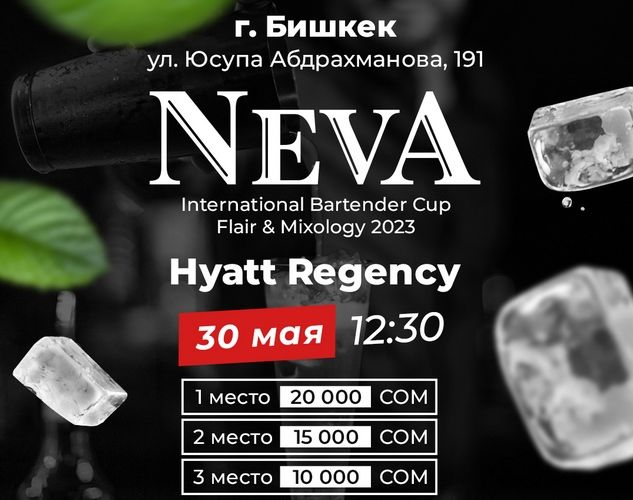 30 мая в 12.30 в 5-звездочном отеле Hyatt Regency по адресу город Бишкек, улица Юсупа Абдрахманова, 191, при поддержке маркетингого агентства Creative Marketing Group пройдет кыргызский отборочный этап конкурса Neva International Bartender Cup — 2023.