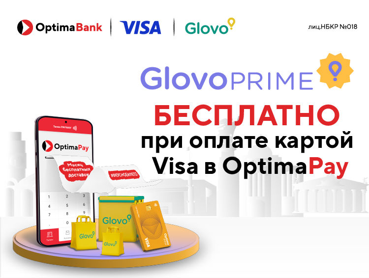 Не пропусти месяц бесплатных доставок с Glovo Prime при оплате картами VISA через Optima Pay.