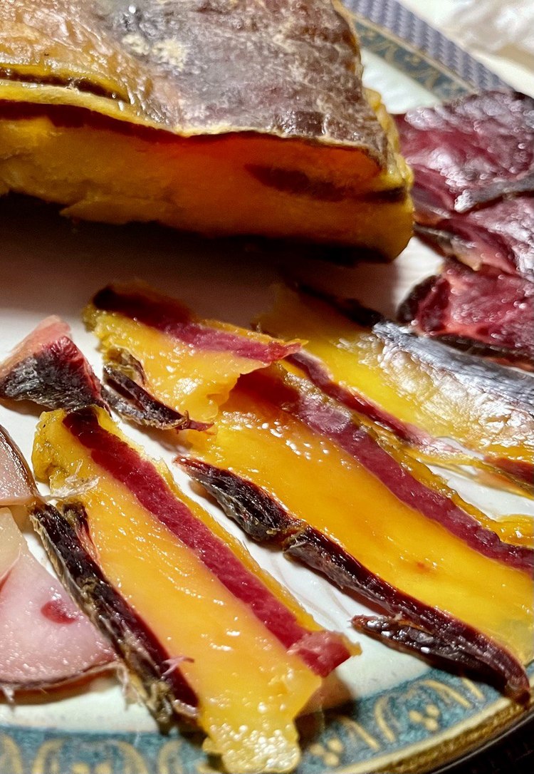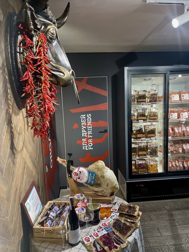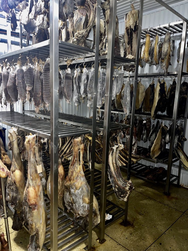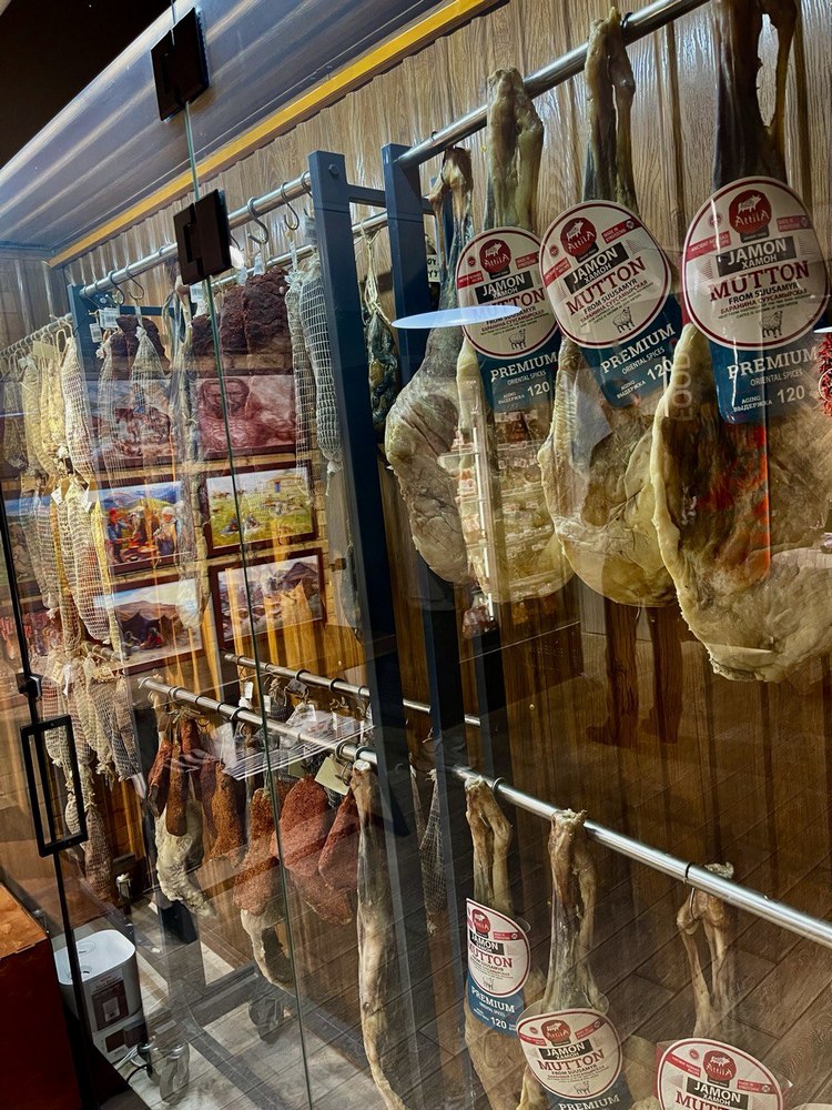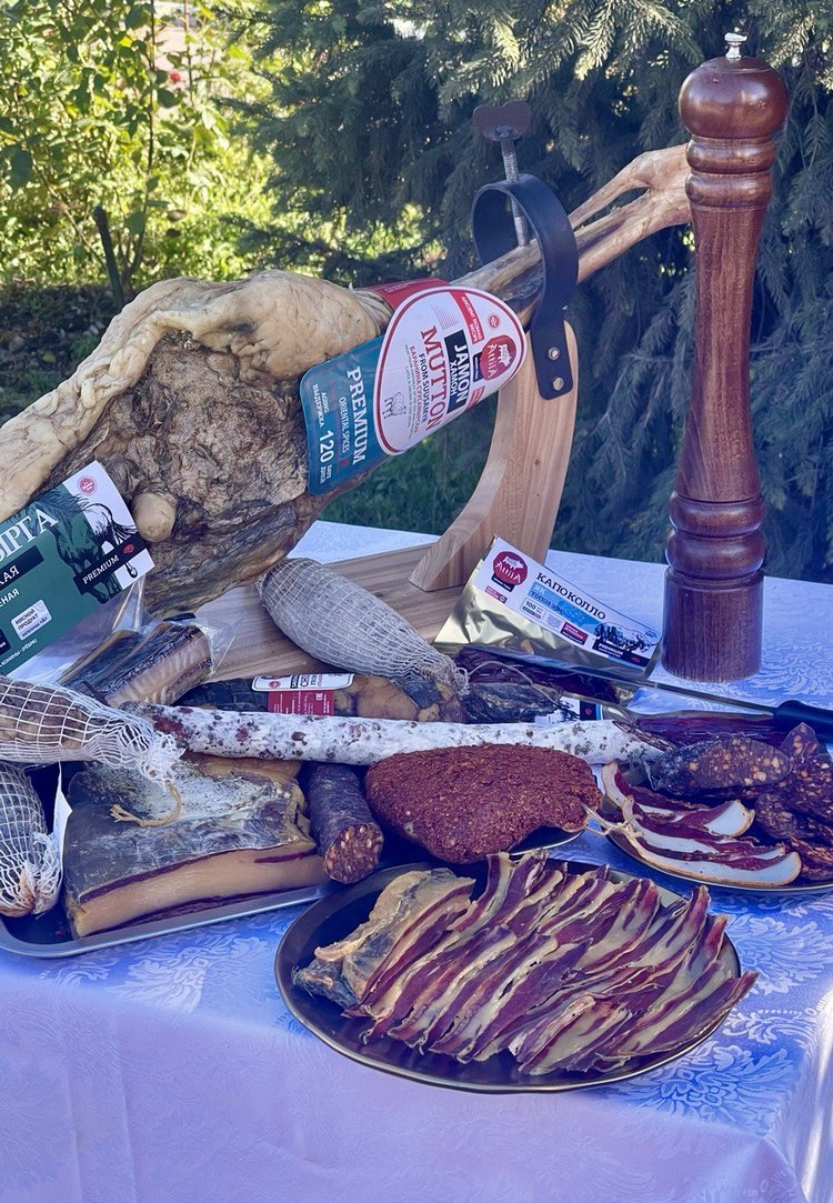 Что мы можем предложить вам сегодня: чучук, брезаола, бастурма, «Коппа», колбасы «Чоризо», «Фуэт», салями «Финоккьона», «Золотая кабырга» и, конечно же, наши хамоны из баранины, яка и молодого жеребца.