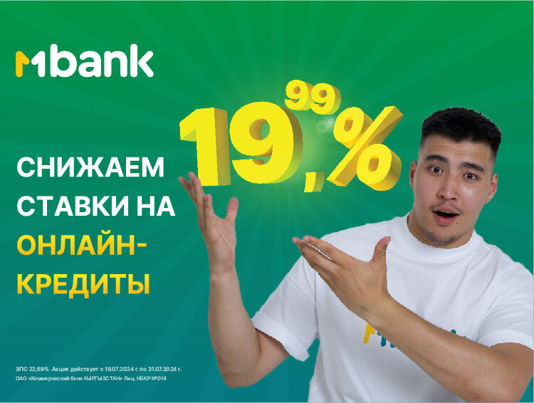 ОАО «Коммерческий банк Кыргызстан» | MBANK объявляет о запуске выгодной акции по онлайн-кредитам, которая предоставляет клиентам уникальную возможность — получить кредит на любые цели с пониженной процентной ставкой до 19,99 процента.