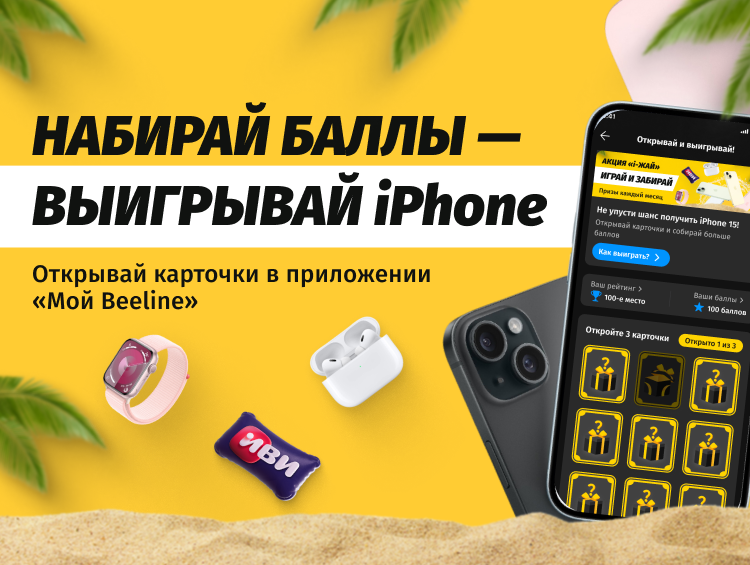 Этим летом «Beeline Кыргызстан» решил бросить вызов стереотипам и доказать, что ценные призы могут достаться каждому. Новая акция «i-Жай» — это уникальная возможность выиграть один из множества iPhone 15, смарт-часы Apple Watch или стильные наушники AirPods, не прилагая особых усилий.