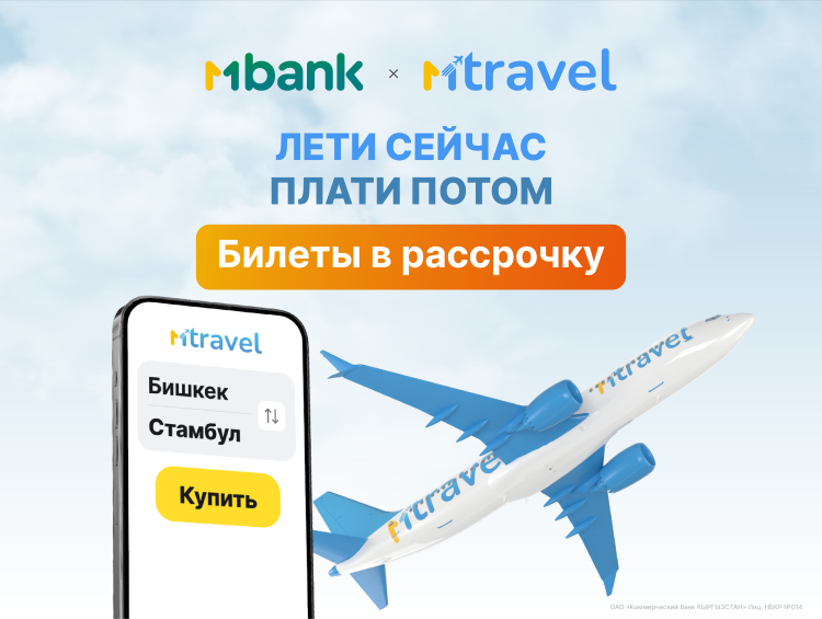 С 1 декабря ОАО «Коммерческий банк Кыргызстан» | MBANK и MTravel открывают новые возможности для путешественников! Теперь можно приобрести авиабилеты по всему миру в рассрочку через MPLUS прямо в приложении MBANK.