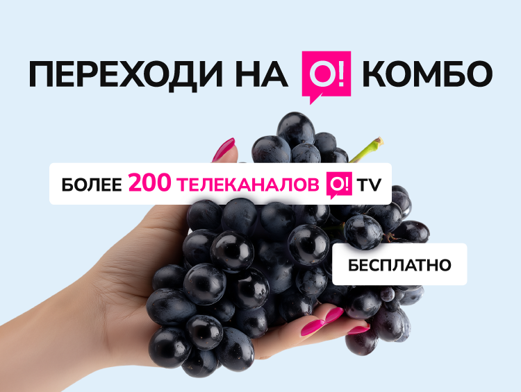 Скачивайте O!TV и смотрите более 200 ТВ-каналов на тарифе «Переходи на О! Комбо». Бесплатно в рамках тарифа можно выбрать 2 комбо-опции. Вы сами решаете, что важно именно сейчас. Это может быть: