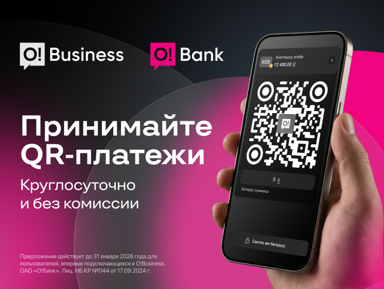 ОАО «О!Банк». Лицензия НБ КР № 044 от 17.09.2024.