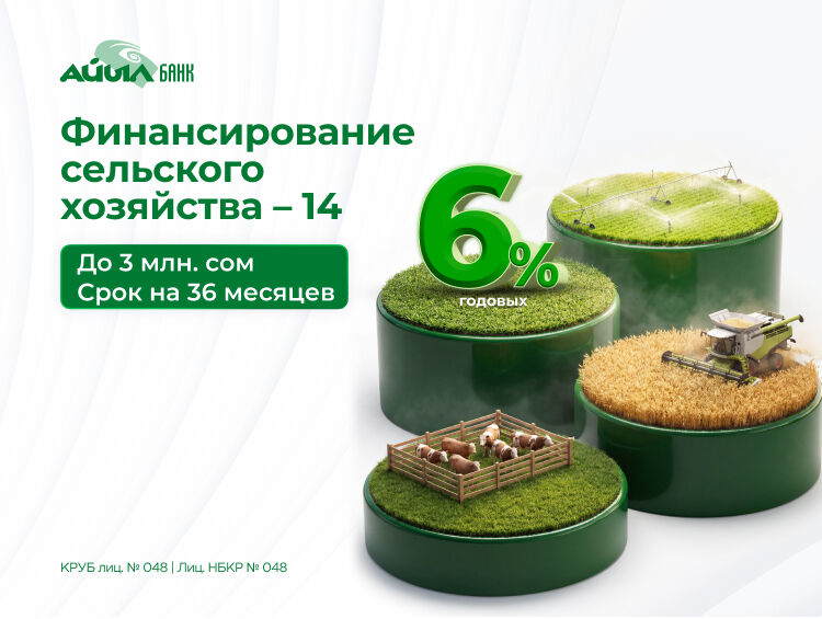 «Айыл Банк» в целях поддержки и развития аграрного сектора Кыргызской Республики, расширения финансовых возможностей фермеров и внедрения современных агротехнологий начал финансирование фермеров и сельхозпроизводителей в рамках льготной программы «Финансирование сельского хозяйства — 14».